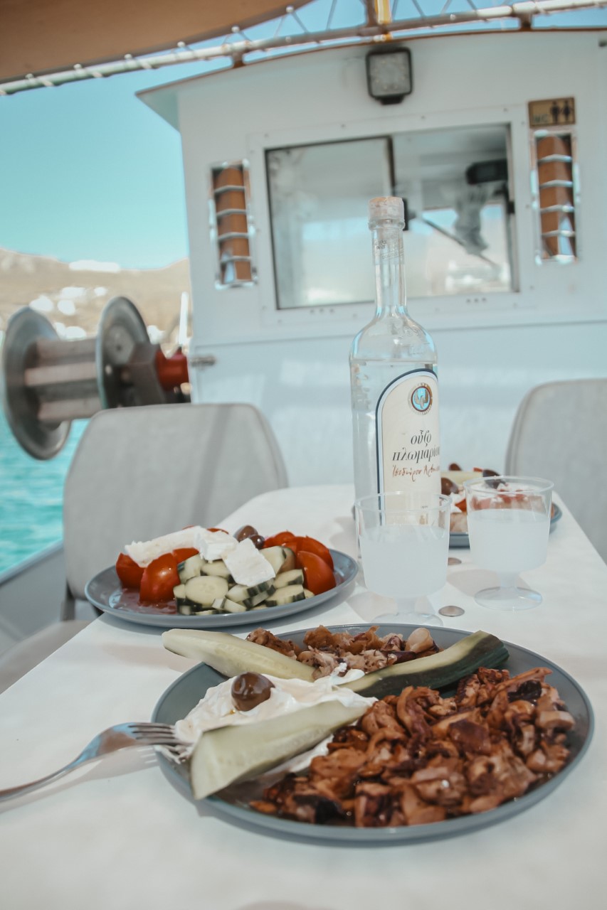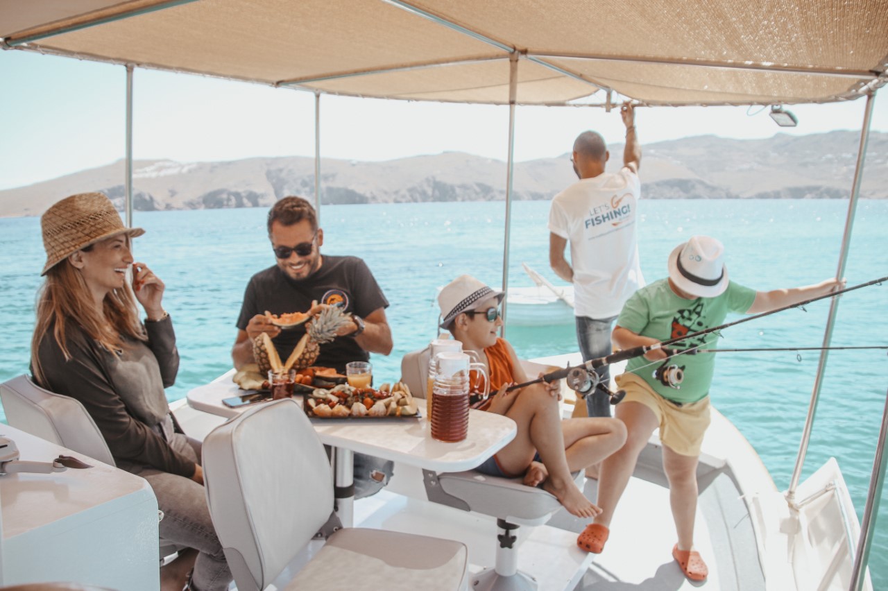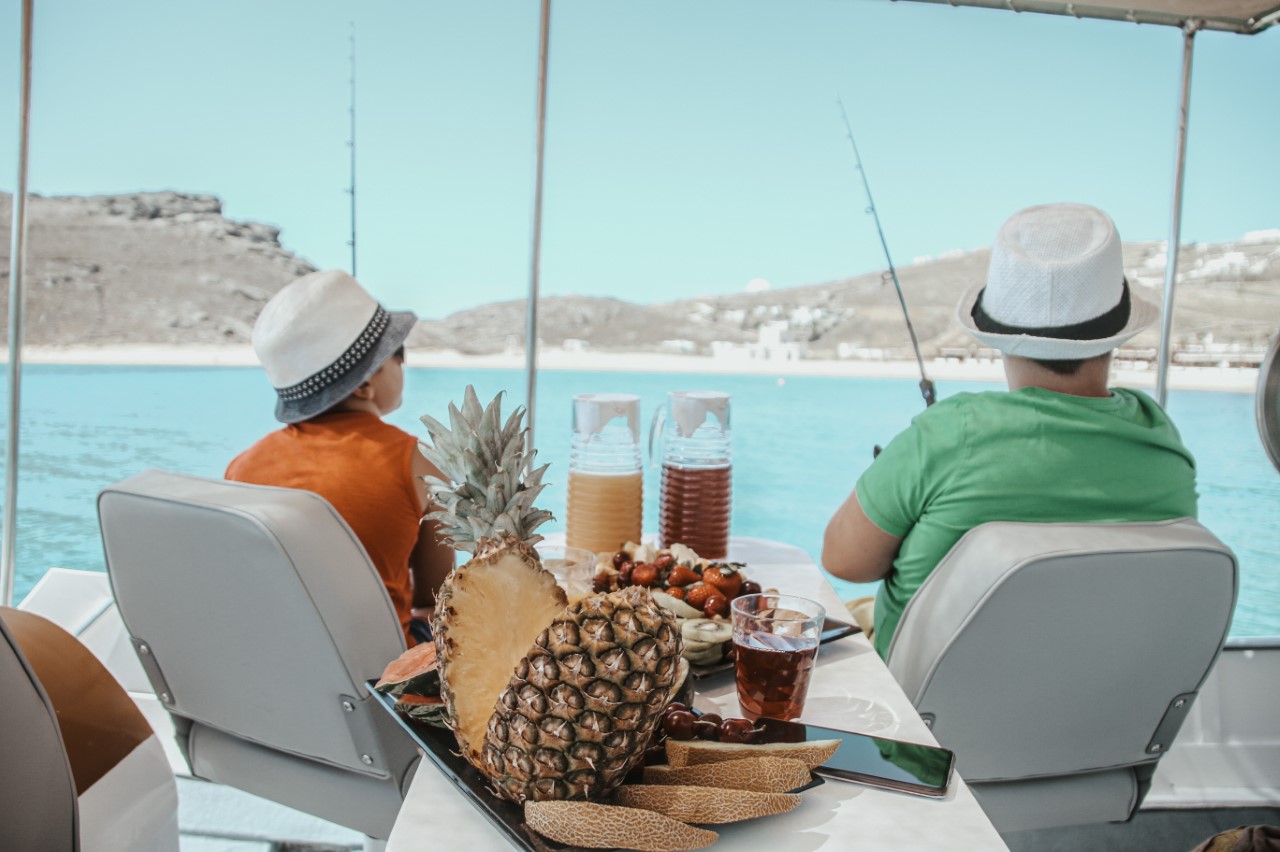 After catching lots and lots of fish during your fishing trip in Mykonos, you can enjoy some traditional delicacies along with a refreshing glass of ouzo. You will be free to take all the fish you caught with you and feel proud of yourselves for the new experience of a relaxing cruise around Mykonos as well as new FISHING SKILLS!