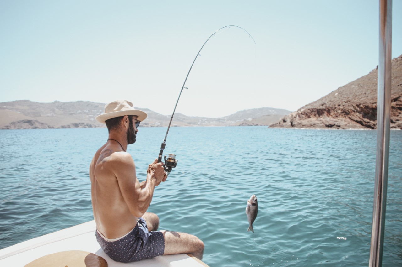 Once we depart from the port, the Captain will let you know a bit about the island, the fish and the waters of Mykonos and Delos. He will go over the equipment available for the adventure and the crew will offer you fresh fruit salads and soft drinks to gain some energy for the activities. He will teach you how we fish in Mykonos and show you some tips and tricks regarding fishing in our waters! Snorkeling masks on board for those who would like to swim and look at the depths of the sea and the fish in it!