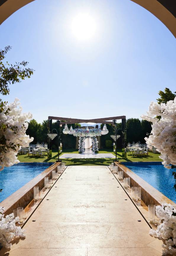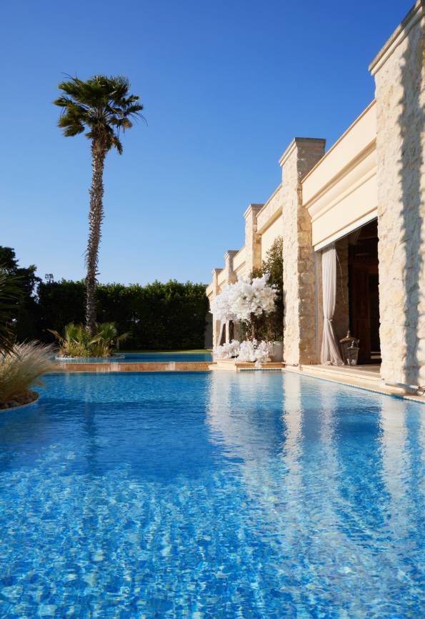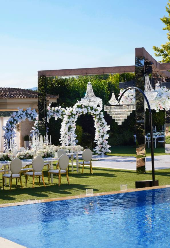 Επίκεντρο του κτήματος είναι το ιδιαίτερης αρχιτεκτονικής κεντρικό κτίριο και οι δύο καταγάλανες πισίνες που συνθέτουν ένα ονειρεμένο σκηνικό για κάθε κοινωνική εκδήλωση. Ο κάθε γάμος, βάπτιση, η εταιρική, κοινωνική ή φιλανθρωπική συγκέντρωση, πραγματοποιεί τον στόχο μας που από το 2010 είναι ένας και μοναδικός: να ξεδιπλώσουμε για εσάς ένα νέο ορίζοντα ευτυχίας! Με γνώμονα την μοναδικότητα του κάθε event, μεταμορφώνουμε κάθε γιορτινή περίσταση σε μία αξέχαστη γιορτή συναισθημάτων και ένα ψηφιδωτό αισθητικής και εμπειριών.