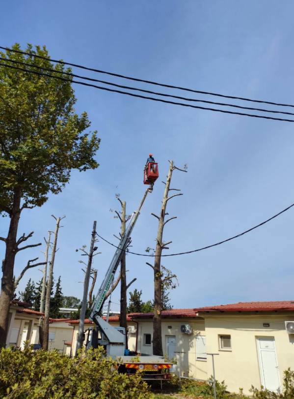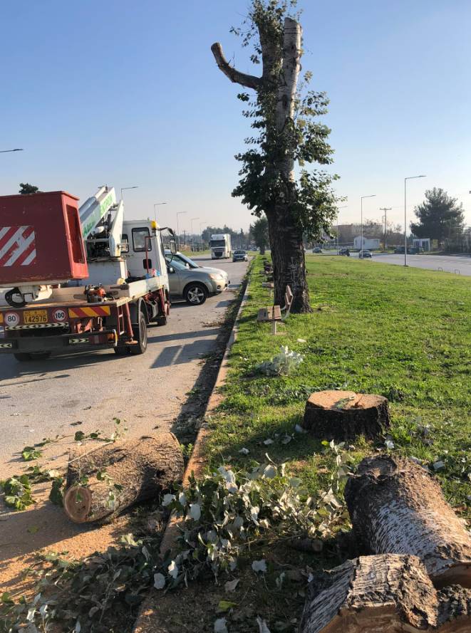 - Κλάδεμα / Κοπή δέντρων με ανυψωτικό μηχάνημα.