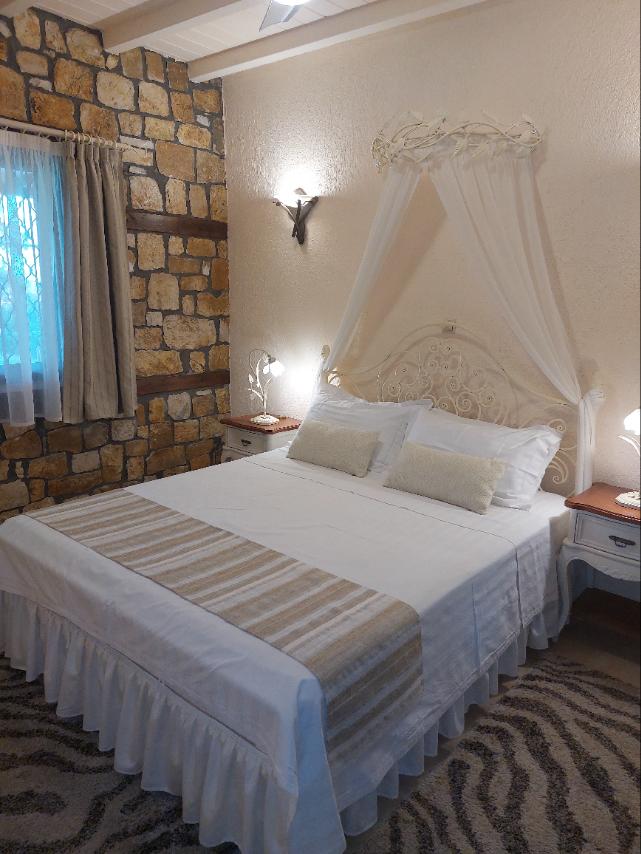 Σε μία υπέροχη και ήσυχη τοποθεσία, μόλις 15 λεπτά από το κέντρο της Θεσσαλονίκης, βρίσκεται η Stone Heaven Villa. Η βίλα μπορεί να φιλοξενήσει έως 4 ενήλικες και αποτελείται από ένα υπνοδωμάτιο, ένα ενιαίο χώρο σαλοκουζίνας, με καναπέ που μετατρέπεται σε υπέρδιπλο κρεβάτι και ένα μπάνιο. Είναι πλήρως εξοπλισμένη με όλες τις ηλεκτρικές συσκευές προσφέροντας μεγαλύτερη άνεση κατά τη διαμονή σας. Η Stone Heaven Villa είναι ιδανική και για οικογένειες καθώς στην καταπράσινη, γεμάτη δέντρα, αυλή των 4.000 m² υπάρχει άπλετος χώρος για παιχνίδι, ενώ οι μικροί μας φίλοι μπορούν παίξουν ελεύθερα στο μοναδικό δεντρόσπιτο.