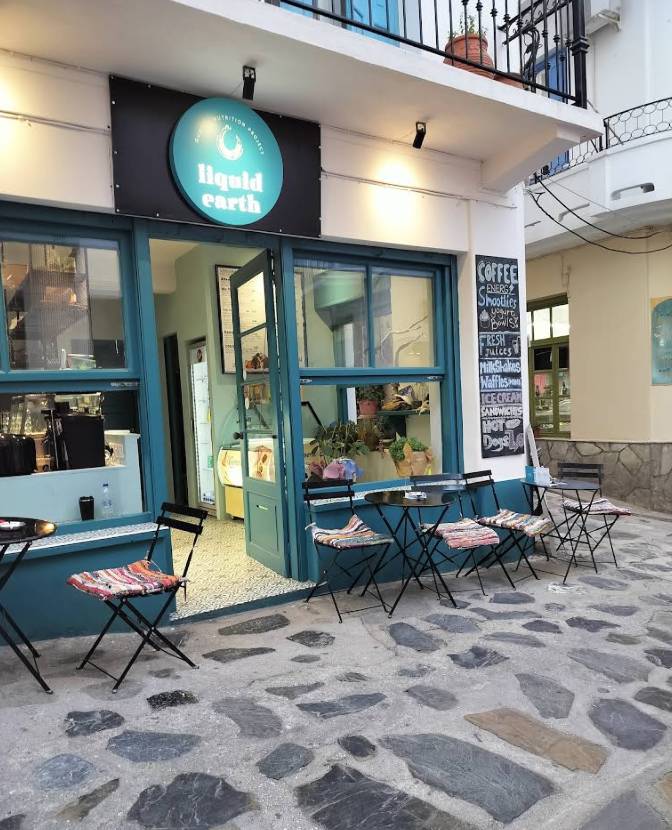 Στη Σκόπελο, το Liquid Earth λειτουργεί ως σύγχρονο snack cafe, ιδανικό για γρήγορες και ποιοτικές επιλογές μέσα στη μέρα. Ο χώρος συνδυάζει χαλαρή ατμόσφαιρα με πρακτικές γεύσεις που ταιριάζουν στον ρυθμό του νησιού. Το μενού περιλαμβάνει αγαπημένα σνακ, υγιεινό brucnh, πρωινό, φρεσκοφτιαγμένα σάντουιτς, ζεστές σφολιάτες και κλασικά hot dogs, αλλά και γλυκές επιλογές όπως βάφλες. Για πιο ισορροπημένες στιγμές, προσφέρονται yogurt bowls, ιδανικά για πρωινό ή ελαφρύ διάλειμμα. Τη γκάμα συμπληρώνουν δροσερά ροφήματα, αρωματικός καφές, φρέσκοι χυμοί, καθώς και απολαυστικά smoothies. Ξεχωριστή θέση έχουν τα energy smoothies, σχεδιασμένα για ενέργεια και δροσιά μετά τη θάλασσα ή τη βόλτα. Διαθέτουν vegan και gluten free επιλογες. Ένα σταθερό σημείο για όσους αναζητούν απλές γεύσεις, φρεσκάδα και άνεση στο νησί.