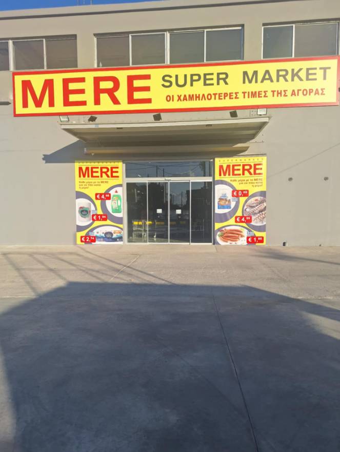 Στο Ασπρόχωμα Καλαμάτας, το MERE αποτελεί αξιόπιστο σούπερ μάρκετ για τις καθημερινές αγορές κάθε νοικοκυριού. Ο χώρος είναι οργανωμένος ώστε να προσφέρει άνετη και γρήγορη εξυπηρέτηση. Διαθέτει μεγάλη ποικιλία σε τρόφιμα, τυποποιημένα τρόφιμα, κατεψυγμένα προϊόντα, καθώς και φρέσκα γαλακτοκομικά και τυροκομικά. Στα ράφια θα βρείτε επίσης ποιοτικά αλλαντικά, φρέσκα φρούτα και λαχανικά για ολοκληρωμένες καθημερινές επιλογές. Παράλληλα, προσφέρονται χαρτικά, απορρυπαντικά και είδη ατομικής υγιεινής, καλύπτοντας κάθε ανάγκη του σπιτιού. Με συχνές προσφορές, το κατάστημα συνδυάζει ποιότητα, οικονομία και πρακτικότητα σε ένα σύγχρονο περιβάλλον αγορών.