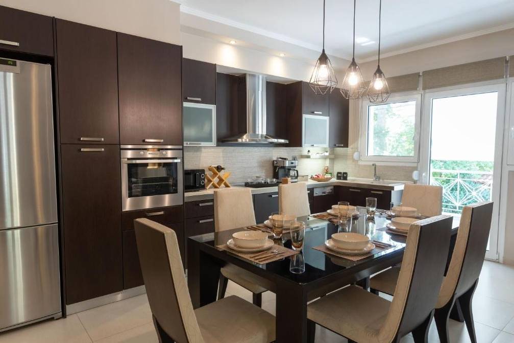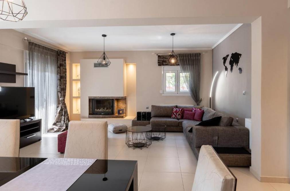 This high quality furnitured and Luxury apartment under the rocks of the Meteora has a fully equipped kitchen and a spacious living- dining area with an air condition 18000BTU and "58' smart TV.Also the apartment is insulated with all the technical specifications so that it is kept warm in the winter, but also cool in the summer. it has new technology windows with double glazing and screens.