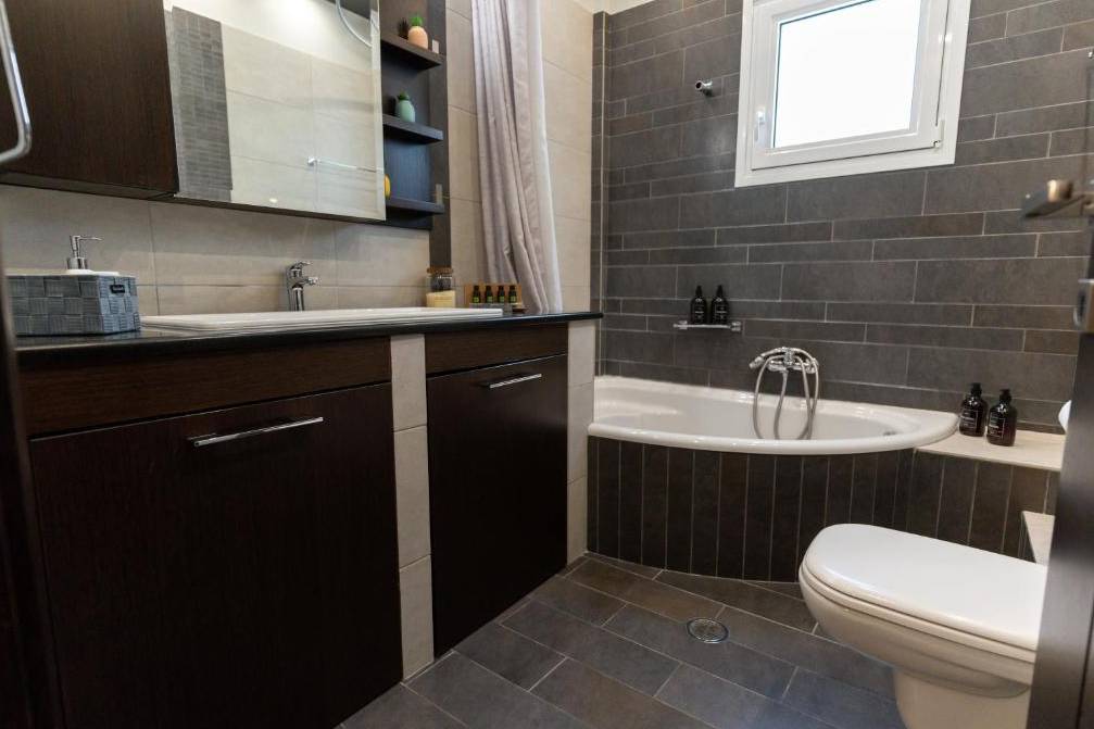 Enjoy your sleep and feel like home as both bedrooms have anatomical mattresses and pillows and quality bedsheets. Bedroom Nefeli is a very modern space with a 32" flat screen TV in it and an air condition 12000BTU. Bedroom Dias is a very atmospheric room with a smat TV " 32' and also with an air condition 12000 BTU, providing also an extra folding single sofa to use if necessary. The LUXURY & MODERN Bathroom has all the amenities you might need and not only!