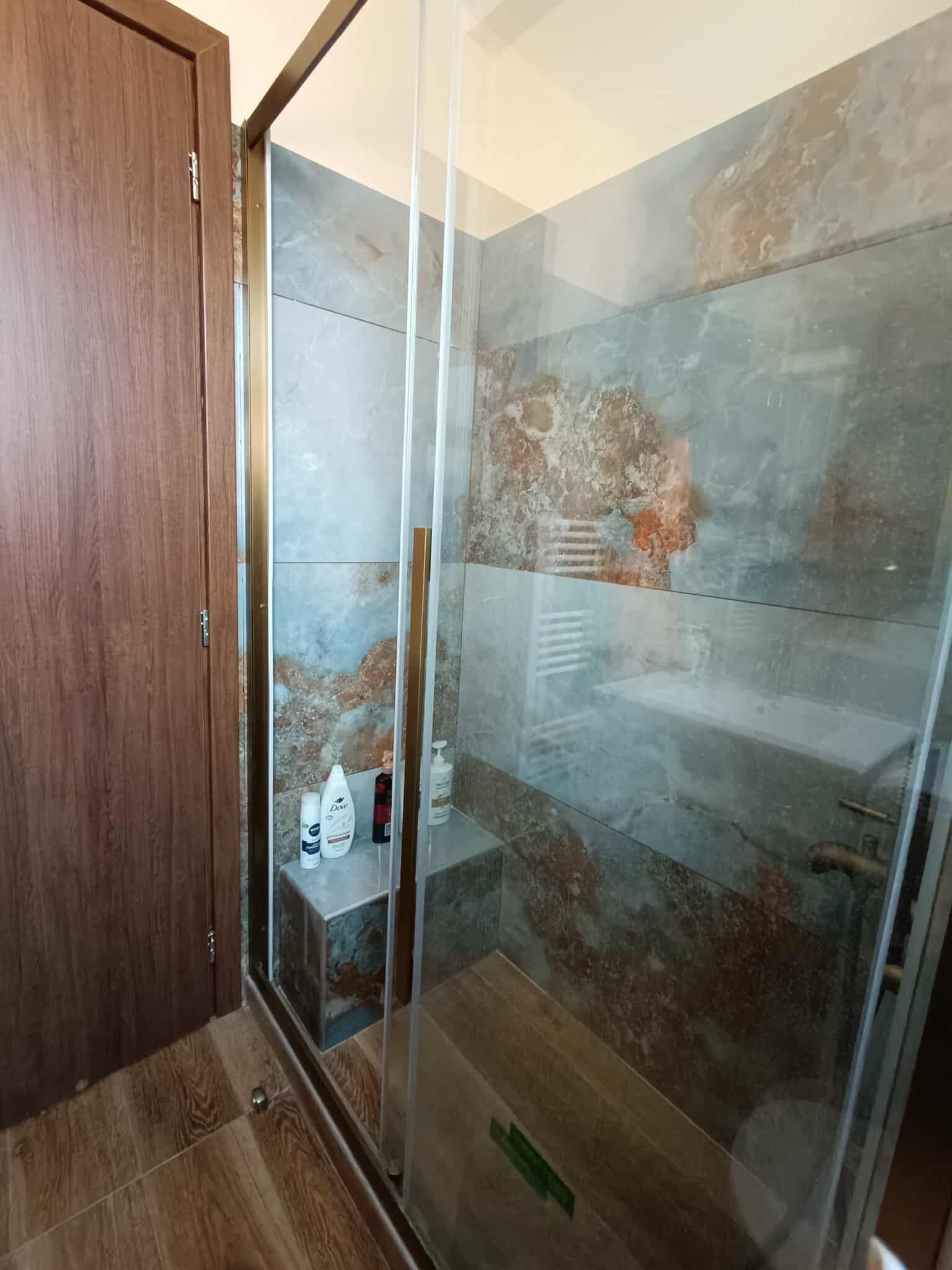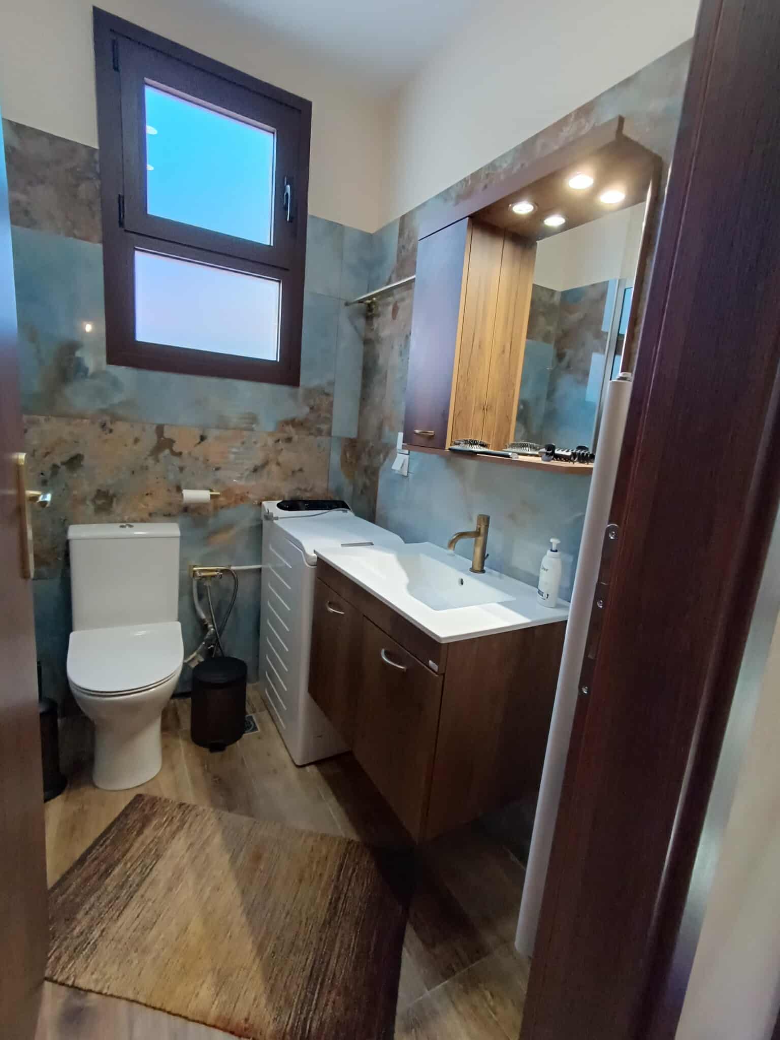 Το μοντέρνο μπάνιο με ντουζιέρα ολοκληρώνει τον χώρο με σύγχρονο σχεδιασμό και πρακτικότητα.