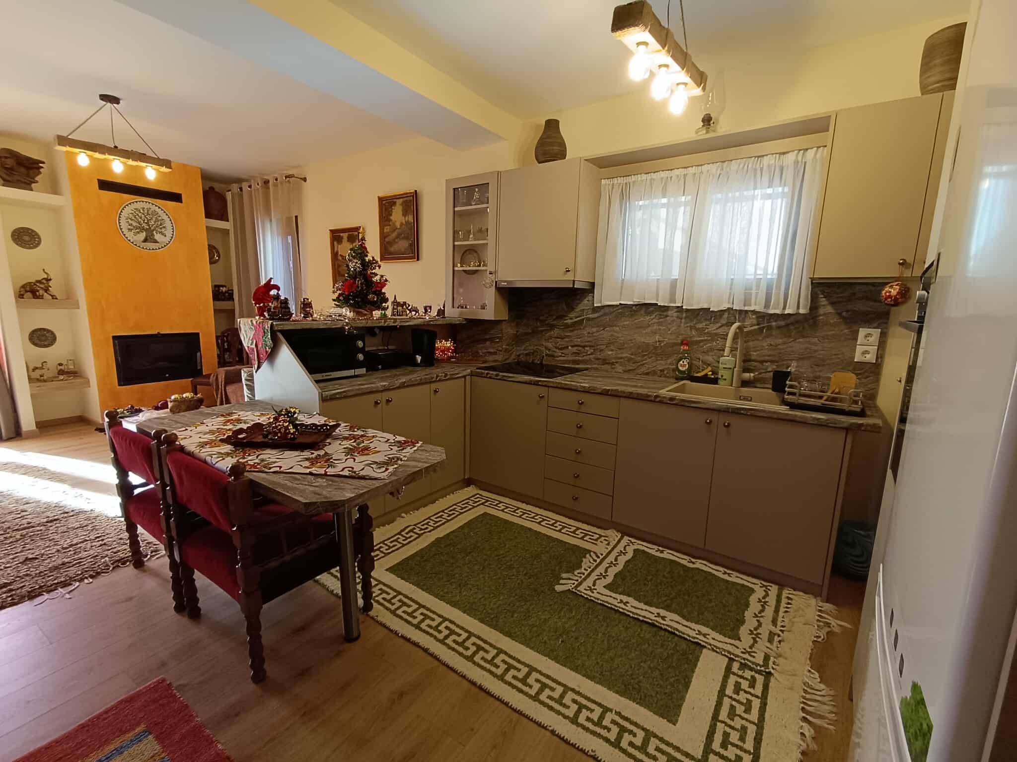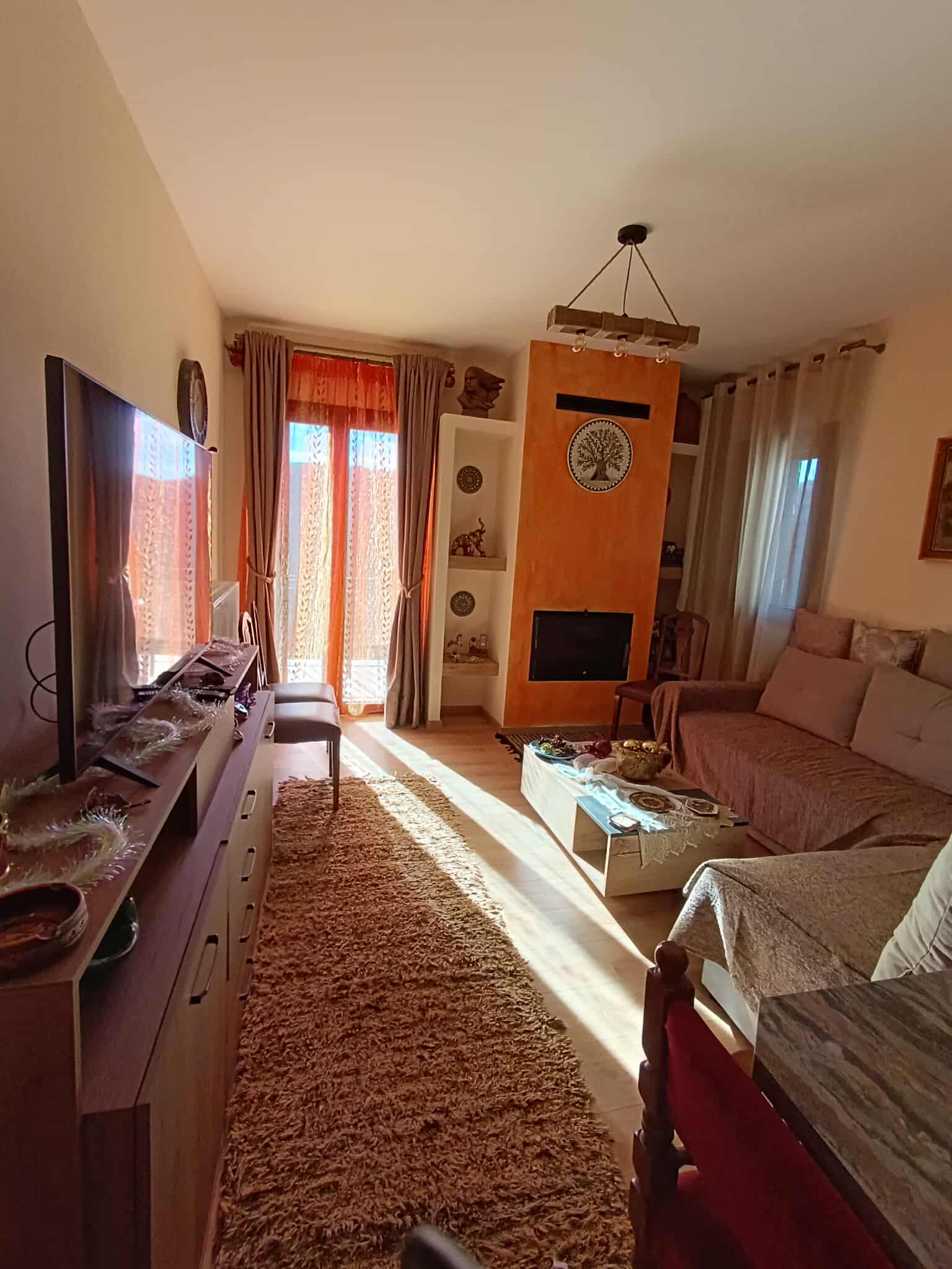 Το σαλόνι είναι ιδανικό για χαλάρωση μετά τις βόλτες στο χωριό ή στη φύση, διαθέτοντας ενεργειακό τζάκι που δημιουργεί μοναδική ατμόσφαιρα τους χειμερινούς μήνες. Παράλληλα, υπάρχει αυτόνομη θέρμανση πετρελαίου με καλοριφέρ, εξασφαλίζοντας άνετη διαμονή όλο τον χρόνο.