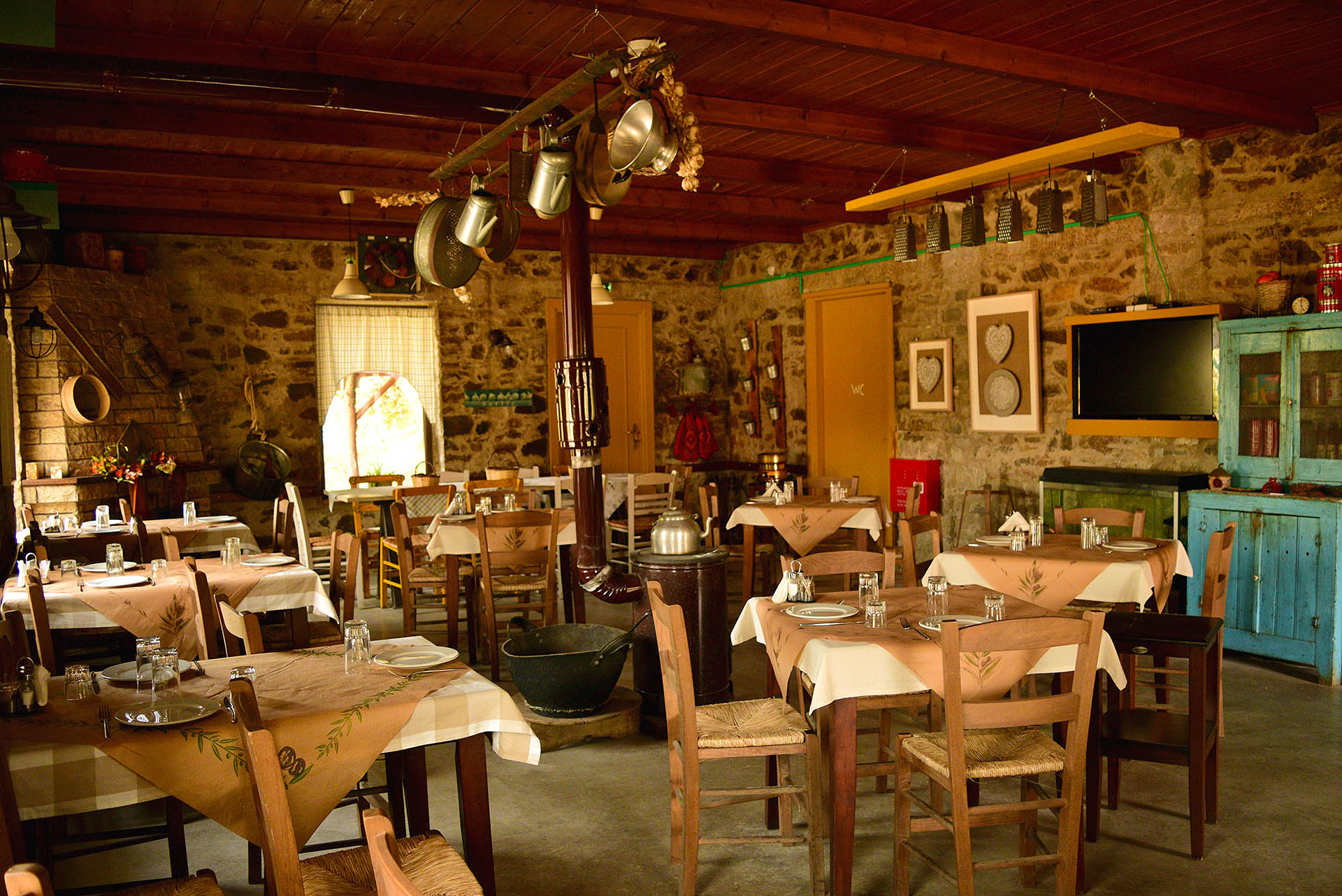 Μενού με παραδοσιακά εδέσματα και περίτεχνα αργοψημένες σούβλες, κάθε Κυριακή και γιορτές.